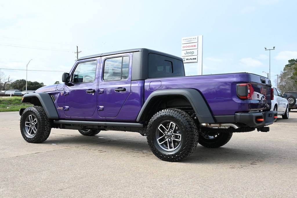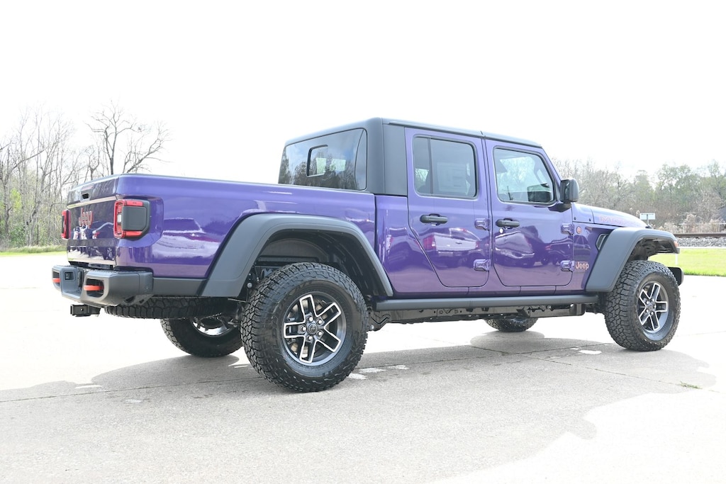 With its striking Purple exterior, the Gladiator Mojave is sure to turn heads wherever you go. The Black 3-Piece Hard Top and 17" Dark Gray Painted alloy wheels add a bold, rugged aesthetic that complements the vehicle's off-road capabilities.