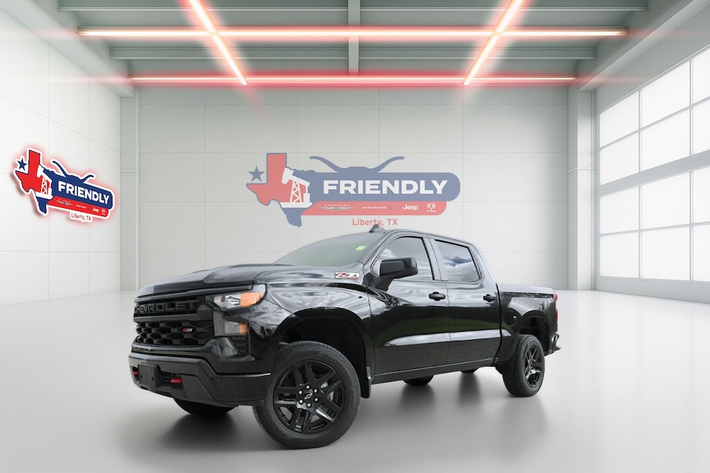 Black 2023 Chevrolet Silverado 1500 Custom Trail Boss 4WD 8-Speed Automatic 2.7L Turbo 8-Speed Automatic, 4WD, Black Cloth, 10-Way Power Driver Seat w/Lumbar, 120-Volt Bed Mounted Power Outlet, 120-Volt Instrument Panel Power Outlet, 3.5" Monochromatic Display Driver Info Center, Auto-Locking Rear Differential, Black Name Plates (LPO), Bluetooth® For Phone, Chevrolet Connected Access Capable, Cloth Rear Seat w/Storage Package, Color-Keyed Carpeting Floor Covering, Compass, Custom Convenience Package, Dark Essentials Package (LPO), Deep-Tinted Glass, Dual Rear USB Ports (Charge Only), Electric Rear-Window Defogger, Electrical Steering Column Lock, Electronic Cruise Control, EZ Lift Power Lock & Release Tailgate, Front Rubberized Vinyl Floor Mats, HD Rear Vision Camera, Heavy-Duty Air Filter, Hill Descent Control, Hitch Guidance, LED Cargo Area Lighting, Manual Tilt Wheel Steering Column, OnStar & Chevrolet Connected Services Capable, Performance Red Recovery Hooks, Power Front Windows w/Driver Express Up/Down, Power Front Windows w/Passenger Express Down, Power Rear Windows w/Express Down, Preferred Equipment Group 2CX, Rear 60/40 Folding Bench Seat (Folds Up), Rear Rubberized-Vinyl Floor Mats, Remote Keyless Entry, Remote Vehicle Starter System, SiriusXM Radio, Standard Tailgate, Suspension Package, Theft Deterrent System (Unauthorized Entry), Trailering Package, Wi-Fi Hot Spot Capable, Wireless Phone Projection.
