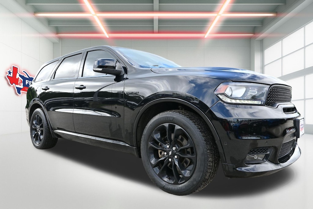 DB Black Crystal Clearcoat 2020 Dodge Durango R/T RWD 8-Speed Automatic HEMI 5.7L V8 Multi Displacement VVT 2nd Row Fold/Tumble Captain Chairs, 2nd Row Mini Console w/Cupholders, 2nd Row Seat Mounted Inboard Armrests, 3.09 Rear Axle Ratio, 3rd Row Floor Mat & Mini Console, 4-Wheel Disc Brakes, 6-Passenger Seating, 7 & 4 Pin Wiring Harness, Adaptive Cruise Control w/Stop, Advanced Brake Assist, Air Conditioning, Anti-whiplash front head restraints, Apple CarPlay/Android Auto, Auto High-beam Headlights, Auto-dimming door mirrors, Auto-dimming Rear-View mirror, Automatic temperature control, Blacktop Package, Blind Spot & Cross Path Detection, Brake assist, Class IV Receiver Hitch, Compass, Delay-off headlights, Driver door bin, Driver vanity mirror, Dual front impact airbags, Dual front side impact airbags, Electronic Stability Control, Emergency communication system: Roadside Assistance/9-1-1 Call, Four wheel independent suspension, Front anti-roll bar, Front dual zone A/C, Front fog lights, Front License Plate Bracket, Front reading lights, Full Speed Forward Collision Warning Plus, Fully automatic headlights, Garage door transmitter, Gloss Black Badges, Gloss Black Exterior Mirrors, Heated door mirrors, Heated steering wheel, Heavy-Duty Engine Cooling, High-Intensity Discharge Headlights, Illuminated entry, Knee airbag, Lane Departure Warning Plus, Leather steering wheel, Low tire pressure warning, Memory seat, Navigation System, Occupant sensing airbag, Outside temperature display, Overhead airbag, Overhead console, ParkView Rear Back-Up Camera, Passenger vanity mirror, Power door mirrors, Power driver seat, Power Liftgate, Power steering, Power Sunroof, Power windows, Quick Order Package 22S, Radio: Uconnect 4C Nav w/8.4" Display, Rain sensing wipers, Rear air conditioning, Rear anti-roll bar, Rear Load Leveling Suspension, Rear reading lights, Rear window defroster, Rear window wiper, Remote keyless entry, Security system, Speed-Sensitive Wipers, Spoiler, Steering wheel mounted audio controls, Tachometer, Technology Group, Telescoping steering wheel, Tilt steering wheel, Traction control, Trailer Brake Control, Trailer Tow Group IV, Trip computer, Turn signal indicator mirrors, Variably intermittent wipers, Wheels: 20" x 8.0" High Gloss Black Aluminum.