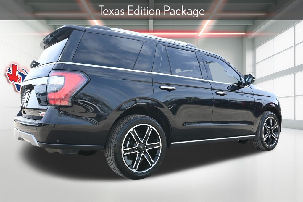 Black 2019 Ford Expedition Limited RWD 10-Speed Automatic EcoBoost 3.5L V6 GTDi DOHC 24V Twin Turbocharged 360-Degree Camera w/Split View, Adaptive Cruise Control, Automatic High Beam Headlamps, Black Roof Rail Crossbars, Cargo Package, Driver Assistance Package, Electronic Limited Slip w/3.73 Axle Ratio, Enhanced Active Park Assist System, Equipment Group 301A, Front dual zone A/C, Heavy-Duty Engine Radiator, Heavy-Duty Trailer Tow Package, Integrated Trailer Brake Controller, Lane-Keeping System, LED Headlamps & Fog Lamps, Panoramic Vista Roof, Pre-Collision Assist, Pro Trailer Backup Assist, Rain-Sensing Front Wipers, Rear air conditioning, Rear window defroster, Special Edition Package, Texas Edition Package, Voice-Activated Touch-Screen Navigation System, Wheels: 22" Premium Black-Painted Aluminum.