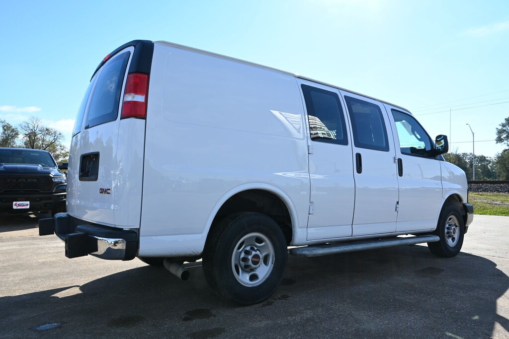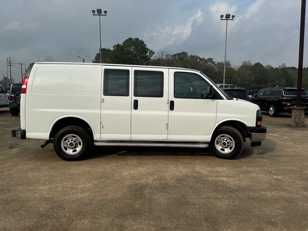 Summit White 2023 GMC Savana 2500 Work Van RWD 8-Speed Automatic with Overdrive 4.3L V6 16" x 6.5" Steel Wheels, 3.42 Rear Axle Ratio, 4-Wheel Disc Brakes, ABS brakes, Air Conditioning, AM/FM Stereo w/MP3 Player, Black Rubberized-Vinyl Front Only Floor Covering, Cruise Control, Delay-off headlights, Driver & Front Passenger High-Back Bucket Seats, Driver Convenience Package, Driver door bin, Driver's Seat Mounted Armrest, Dual front impact airbags, Dual front side impact airbags, Electronic Stability Control, Emergency communication system: OnStar and GMC connected services capable, Engine Cover Console w/Swing-Out Storage Bin, Exterior Parking Camera Rear, Fixed Rear Door Window Glass, Fixed Rear Side Door Window Glass, Front anti-roll bar, Front Bucket Seats, Full-Length Black Rubberized-Vinyl Floor Covering, Fully automatic headlights, Heated door mirrors, Low tire pressure warning, Occupant sensing airbag, Overhead airbag, Passenger cancellable airbag, Passenger door bin, Passenger seat mounted armrest, Power door mirrors, Power steering, Power windows, Preferred Equipment Group 1WT, Rear & Side Cargo Door Glass, Reclining Front Bucket Seats w/Inboard Armrests, Single-Zone Manual Air Conditioning, Tachometer, Tilt Steering Wheel, Traction control, Trip computer, Variably intermittent wipers, Vinyl Seat Trim, Voltmeter.