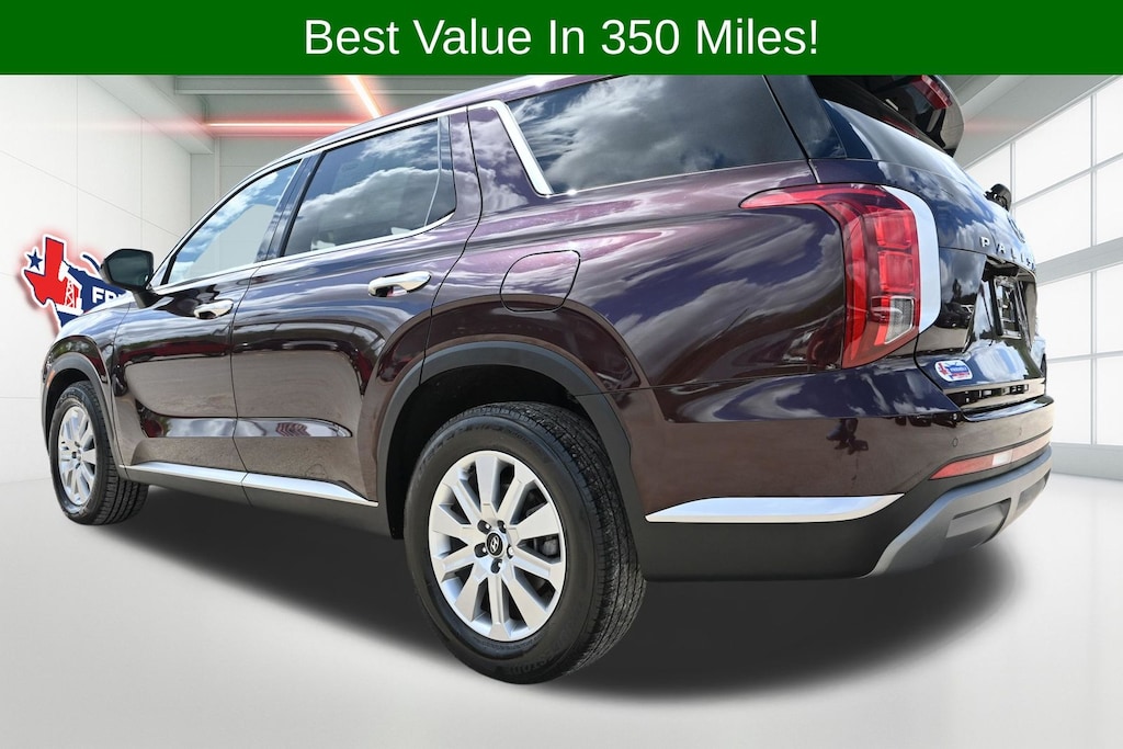 Sierra Burgundy 2024 Hyundai Palisade SEL FWD 8-Speed Automatic with SHIFTRONIC V6 4-Wheel Disc Brakes, 6 Speakers, ABS brakes, AM/FM radio: SiriusXM, Apple CarPlay & Android Auto, Auto High-beam Headlights, Auto-dimming door mirrors, Auto-dimming Rear-View mirror, Automatic temperature control, Bumpers: body-color, Driver door bin, Driver vanity mirror, Dual front impact airbags, Dual front side impact airbags, Electronic Stability Control, Emergency communication system, Exterior Parking Camera Rear, Four wheel independent suspension, Front anti-roll bar, Front dual zone A/C, Front reading lights, Fully automatic headlights, H-Tex Leatherette Seat Trim, Heated door mirrors, Heated Front Bucket Seats, Heated front seats, Illuminated entry, Knee airbag, Low tire pressure warning, Navigation System, Occupant sensing airbag, Option Group 01, Outside temperature display, Overhead airbag, Overhead console, Passenger door bin, Passenger vanity mirror, Power door mirrors, Power driver seat, Power Liftgate, Power passenger seat, Power steering, Power windows, Radio: AM/FM/MP3 Audio System, Rear air conditioning, Rear reading lights, Rear window defroster, Reclining 3rd row seat, Remote keyless entry, Security system, Speed control, Speed-sensing steering, Split folding rear seat, Spoiler, Tachometer, Telescoping steering wheel, Tilt steering wheel, Traction control, Trip computer, Turn signal indicator mirrors, Variably intermittent wipers, Wheels: 18" x 7.5J Painted Finish Alloy.