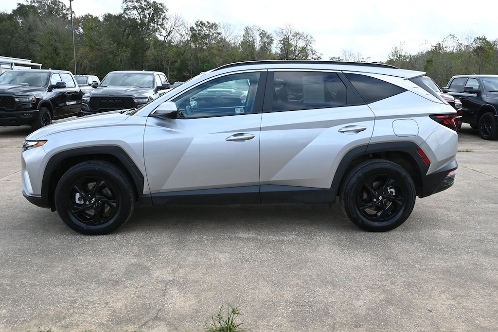 Shimmering Silver 2024 Hyundai Tucson SEL AWD 8-Speed Automatic with SHIFTRONIC 2.5L I4 DGI DOHC 16V LEV3-SULEV30 187hp AWD, 3.648 Axle Ratio, Apple CarPlay & Android Auto, Automatic temperature control, Dual front impact airbags, Dual front side impact airbags, Electronic Stability Control, Emergency communication system: Blue Link Connected Car Service (3-year complimentary subscription), Exterior Parking Camera Rear, Front anti-roll bar, Front Bucket Seats, Front Center Armrest, Front dual zone A/C, Fully automatic headlights, Heated door mirrors, Heated Front Bucket Seats, Low tire pressure warning, Option Group 01, Outside temperature display, Overhead airbag, Panic alarm, Power door mirrors, Power driver seat, Power Liftgate, Power windows, Radio: AM/FM/HD Audio System, Rear anti-roll bar, Rear seat center armrest, Rear side impact airbag, Rear window defroster, Rear window wiper, Remote keyless entry, Roof rack: rails only, Security system, Speed control, Split folding rear seat, Spoiler, Stain & Odor Resistant Cloth Seat Trim, Steering wheel mounted audio controls, Telescoping steering wheel, Tilt steering wheel, Traction control, Variably intermittent wipers, Wheels: 17" x 7.0J" Alloy.