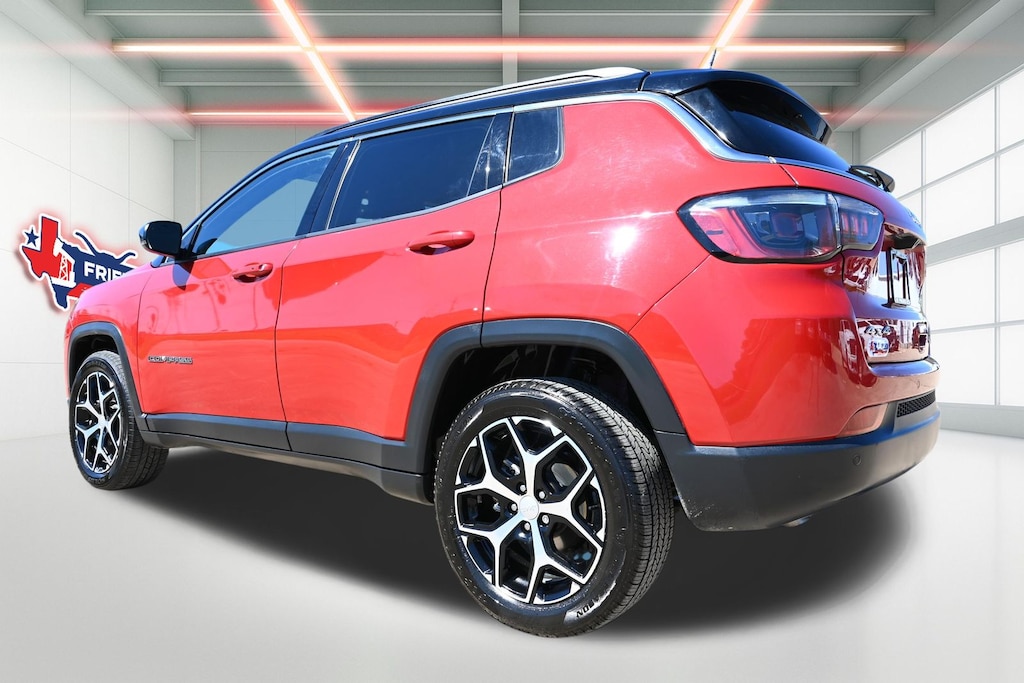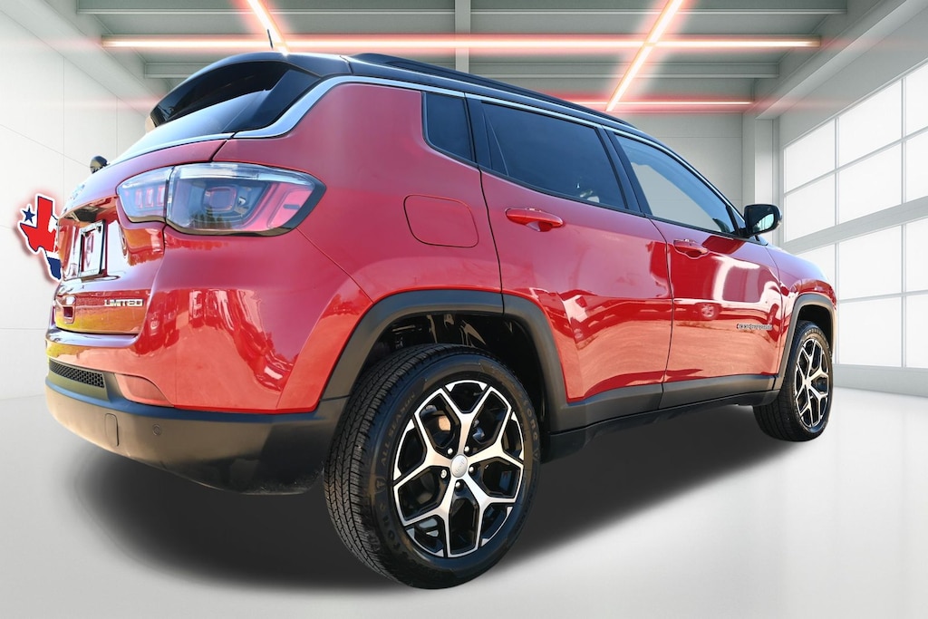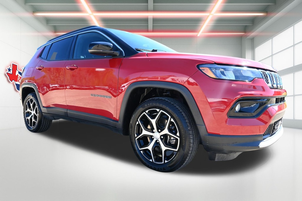 Red Hot Pearlcoat 2024 Jeep Compass Limited 4WD 8-Speed Automatic 2.0L I4 DOHC 4WD, 10.1" Touchscreen Display, 3.73 Final Drive Ratio, 4-Wheel Disc Brakes, 4G LTE Wi-Fi Hot Spot, ABS brakes, Auto High-beam Headlights, Auto-dimming Rear-View mirror, Automatic temperature control, Bumpers: body-color, Compass, Disassociated Touchscreen Display, Driver door bin, Driver vanity mirror, Dual front impact airbags, Dual front side impact airbags, Emergency communication system: Jeep Connect, Four wheel independent suspension, Front anti-roll bar, Front Bucket Seats, Front Center Armrest w/Storage, Front dual zone A/C, Front reading lights, Global Telematics Box Module (TBM), Heated door mirrors, Heated front seats, Heated steering wheel, Illuminated entry, Knee airbag, Leather Shift Knob, Leather steering wheel, Leatherette Seats, Low tire pressure warning, Occupant sensing airbag, Outside temperature display, Overhead console, Passenger door bin, Passenger vanity mirror, Power door mirrors, Power driver seat, Power steering, Power windows, Quick Order Package 29G Limited, Radio: Uconnect 5 w/10.1" Display, Rear seat center armrest, Rear window defroster, Rear window wiper, Remote keyless entry, Split folding rear seat, Spoiler, Steering wheel mounted audio controls, Traction control, Turn signal indicator mirrors, Variably intermittent wipers, Wheels: 18" x 7" Painted Diamond Cut Aluminum.
