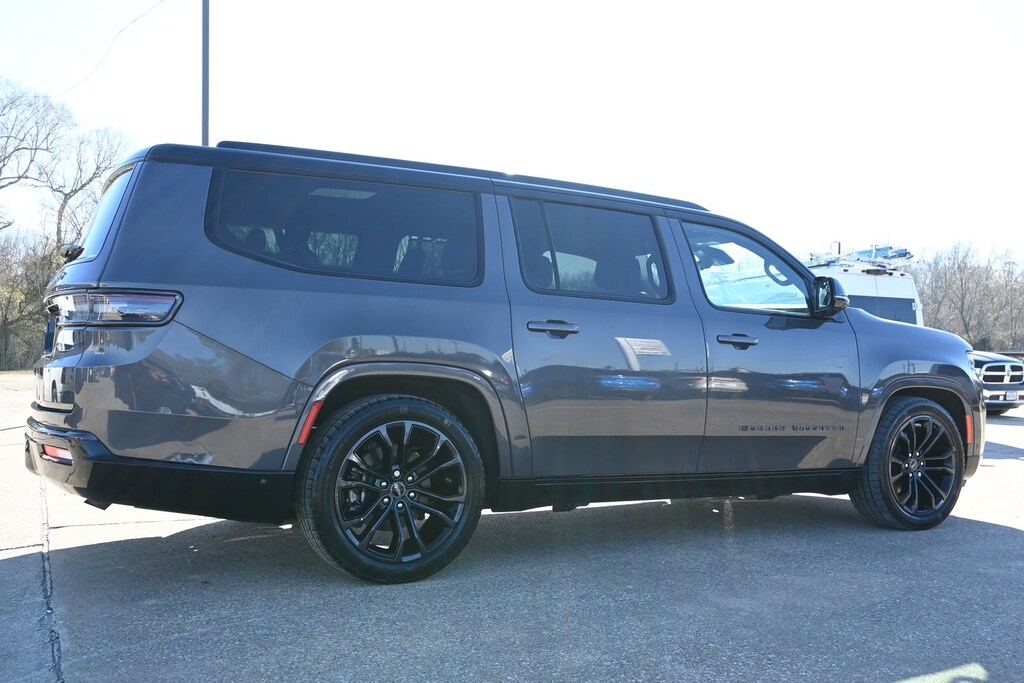 Baltic Gray Metallic Clearcoat 2024 Jeep Grand Wagoneer L Series II 4WD 8-Speed Automatic 3.0L I6 23 Speaker McIntosh Reference Audio System, ABS brakes, Adjustable Roof Rail Crossbars, Auto-leveling suspension, Automatic temperature control, Black Interior Accents, Black Roof, Front Console Cooler, Front dual zone A/C, Front Passenger Interactive Display, Gloss Black Upper & Lower DLO Molding, Heads-Up Display, Memory seat, Navigation System, Obsidian Appearance Package, Pedal memory, Piano Black Exterior Accents, Power driver seat, Power windows, Quick Order Package 28T Obsidian, Radio: Uconnect 5 Nav w/12.0" Display, Rear air conditioning, Rear dual zone A/C, Rearview Autodim Digital Display Mirror, Remote keyless entry, Speed-sensing steering, Steering wheel memory, Steering wheel mounted audio controls, Ventilated Rear Seats, Wheels: 22" x 9.0" Tinted Polished w/Black Insert.