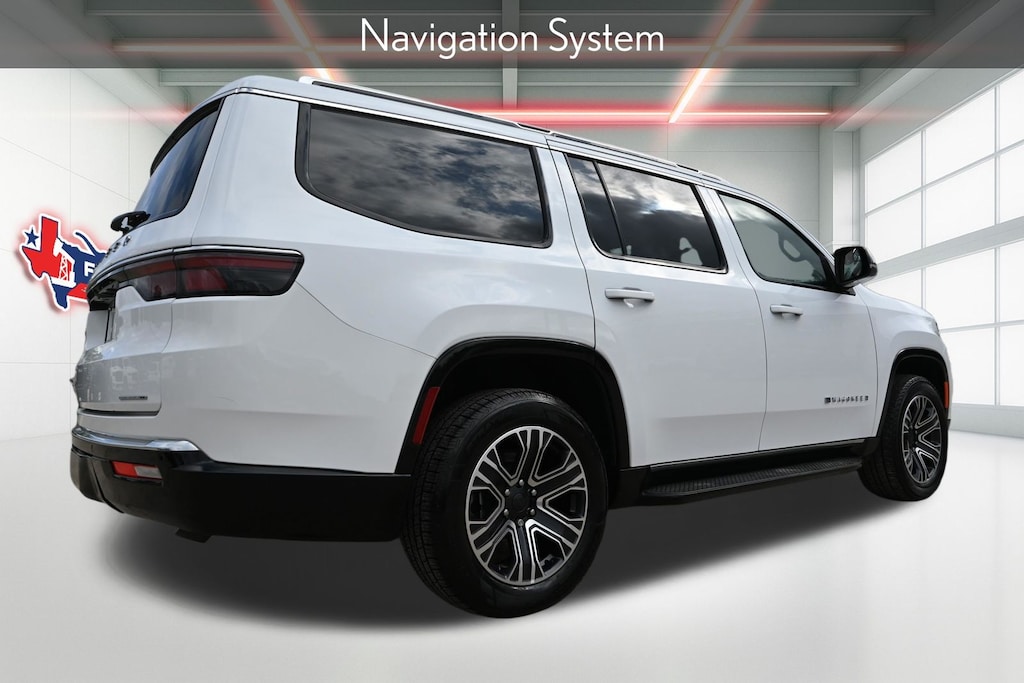 Bright White Clearcoat 2024 Jeep Wagoneer Series II RWD 8-Speed Automatic 3.0L I6 3.55 Rear Axle Ratio, 3rd row seats: bench, 4-Wheel Disc Brakes, 8-Passenger Seating, ABS brakes, Adjustable pedals, Anti-whiplash front head restraints, Apple CarPlay/Android Auto, Auto-dimming door mirrors, Auto-dimming Rear-View mirror, Automatic temperature control, Brake assist, Bumpers: body-color, Compass, Delay-off headlights, Driver door bin, Driver vanity mirror, Driver's Seat Mounted Armrest, Dual front impact airbags, Dual front side impact airbags, Electronic Stability Control, Emergency communication system: Wagoneer Connect, Exterior Parking Camera Rear, Four wheel independent suspension, Front anti-roll bar, Front Bucket Seats, Front Center Armrest w/Storage, Front dual zone A/C, Front fog lights, Front reading lights, Fully automatic headlights, Garage door transmitter, Genuine wood console insert, Genuine wood dashboard insert, Genuine wood door panel insert, Heated door mirrors, Heated front seats, Heated rear seats, Heated steering wheel, Illuminated entry, Intersection Collision Assist System, Knee airbag, Leather Trimmed Bucket Seats, Low tire pressure warning, Memory seat, Navigation System, Normal Duty Suspension, Occupant sensing airbag, Outside temperature display, Overhead airbag, Overhead console, Panic alarm, Passenger door bin, Passenger seat mounted armrest, Passenger vanity mirror, Pedal memory, Power adjustable front head restraints, Power door mirrors, Power Liftgate, Power passenger seat, Power windows, Quick Order Package 25J, Radio: Uconnect 5 Nav w/10.1" Display, Rain sensing wipers, Rear air conditioning, Rear anti-roll bar, Rear dual zone A/C, Rear reading lights, Rear seat center armrest, Rear window defroster, Rear window wiper, Reclining 3rd row seat, Remote keyless entry, Security system, Speed control, Speed-sensing steering, Speed-Sensitive Wipers, Split folding rear seat, Steering wheel memory, Steering wheel mounted audio controls, Tachometer, Telescoping steering wheel, Tilt steering wheel, Traction control, Trip computer, Turn signal indicator mirrors, Variably intermittent wipers, Ventilated front seats, Voltmeter, Wheels: 20" x 9.0" Premium 2 Aluminum.
