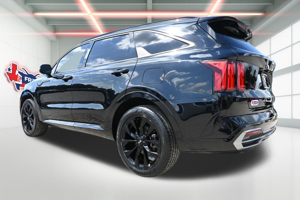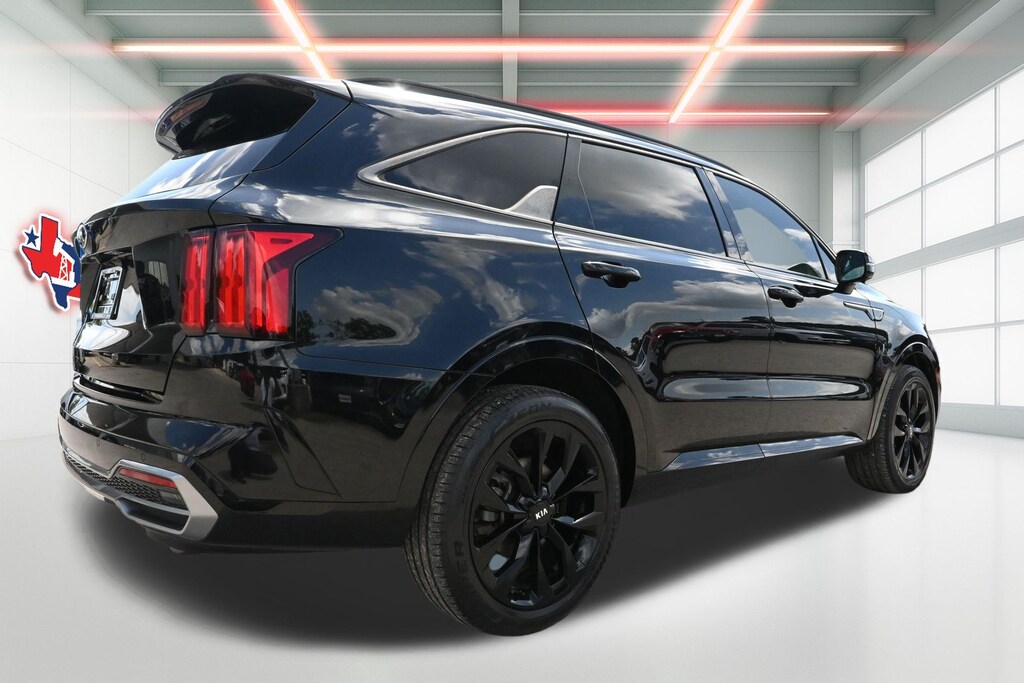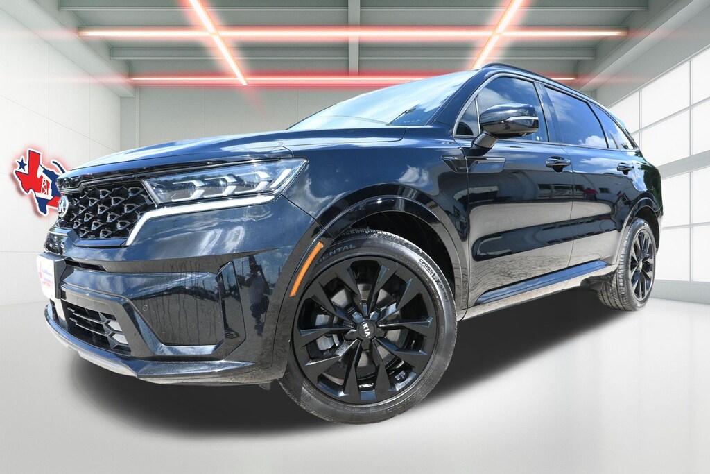 Ebony Black 2021 Kia Sorento SX-Prestige FWD 8-Speed DCT 2.5L I4 DGI Turbocharged DOHC 16V LEV3-ULEV70 281hp 3.316 Axle Ratio, 3rd row seats: split-bench, 4-Wheel Disc Brakes, ABS brakes, Apple CarPlay & Android Auto, Auto Dimming Mirror w/HomeLink (Plug-N-Play), Auto-dimming Rear-View mirror, Automatic temperature control, Brake assist, Bumpers: body-color, Driver door bin, Driver vanity mirror, Dual front impact airbags, Dual front side impact airbags, Electronic Stability Control, Emergency communication system: UVO link, Four wheel independent suspension, Front anti-roll bar, Front Bucket Seats, Front Center Armrest, Front dual zone A/C, Front fog lights, Front reading lights, Fully automatic headlights, Heated & Ventilated Front Bucket Seats, Heated front seats, Heated steering wheel, Illuminated entry, Knee airbag, Leather steering wheel, Low tire pressure warning, Navigation System, Occupant sensing airbag, Outside temperature display, Overhead airbag, Overhead console, Panic alarm, Passenger door bin, Passenger vanity mirror, Perforated Genuine Leather Seat Trim, Power door mirrors, Power driver seat, Power Liftgate, Power moonroof, Power passenger seat, Power steering, Power windows, Radio: AM/FM Bose Audio System w/Navigation, Rear anti-roll bar, Rear reading lights, Rear window defroster, Rear window wiper, Remote keyless entry, Roof rack: rails only, Security system, Smart Key w/ Push Button and Remote Start, Speed control, Speed-sensing steering, Split folding rear seat, Spoiler, Steering wheel mounted audio controls, Tachometer, Telescoping steering wheel, Tilt steering wheel, Traction control, Trip computer, Turn signal indicator mirrors, Variably intermittent wipers, Ventilated front seats, Wheels: 20" Gloss Black Alloy.