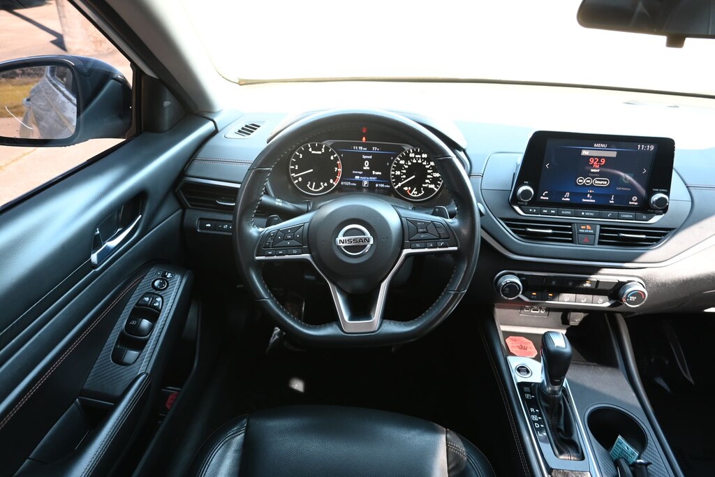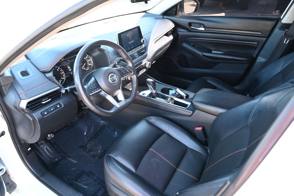 Pearl White Tricoat 2022 Nissan Altima 2.5 SR FWD CVT with Xtronic 2.5L 4-Cylinder DOHC 16V CVT with Xtronic, Air Conditioning, Alloy wheels, AM/FM radio: SiriusXM, Dual front impact airbags, Dual front side impact airbags, Electronic Stability Control, Front anti-roll bar, Front Sport Bucket Seats, Fully automatic headlights, Knee airbag, Leather Shift Knob, Low tire pressure warning, NissanConnect featuring Apple CarPlay and Android Auto, Occupant sensing airbag, Outside temperature display, Overhead airbag, Power door mirrors, Power driver seat, Power windows, Radio: AM/FM Audio System, Rear anti-roll bar, Rear Parking Sensors, Rear side impact airbag, Rear window defroster, Remote keyless entry, Security system, Speed control, Speed-sensing steering, Speed-Sensitive Wipers, Sport Seat Trim, Sport steering wheel, Steering wheel mounted audio controls, Tachometer, Telescoping steering wheel, Tilt steering wheel, Traction control, Trip computer, Variably intermittent wipers.