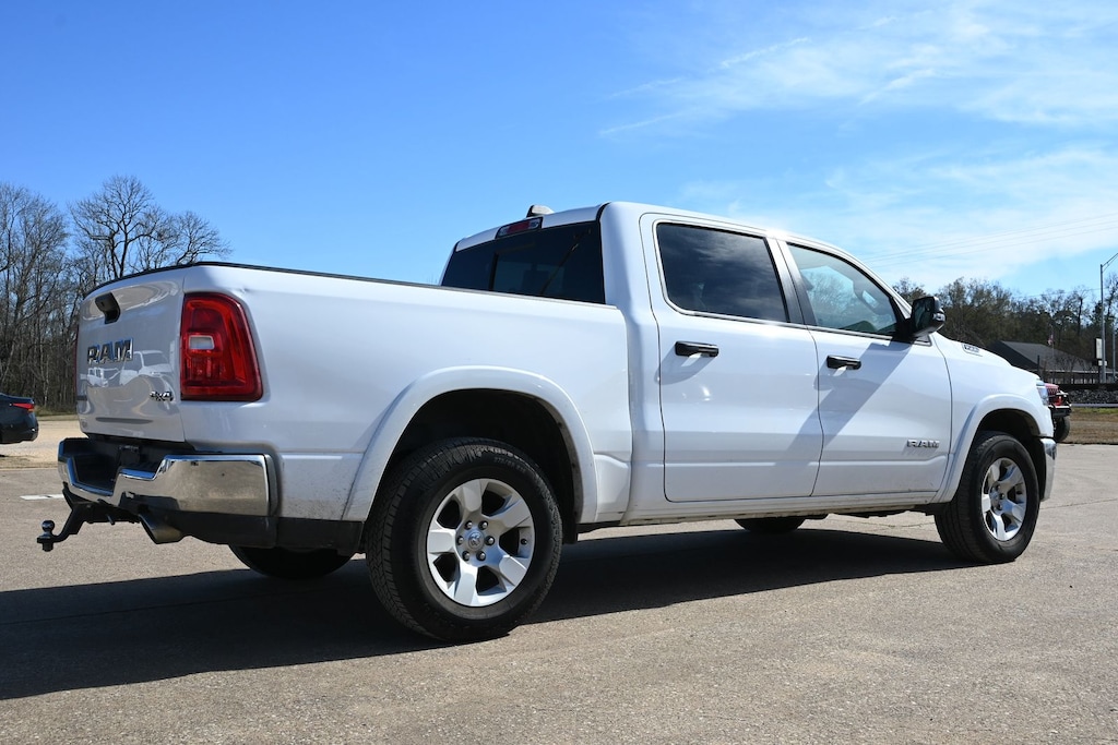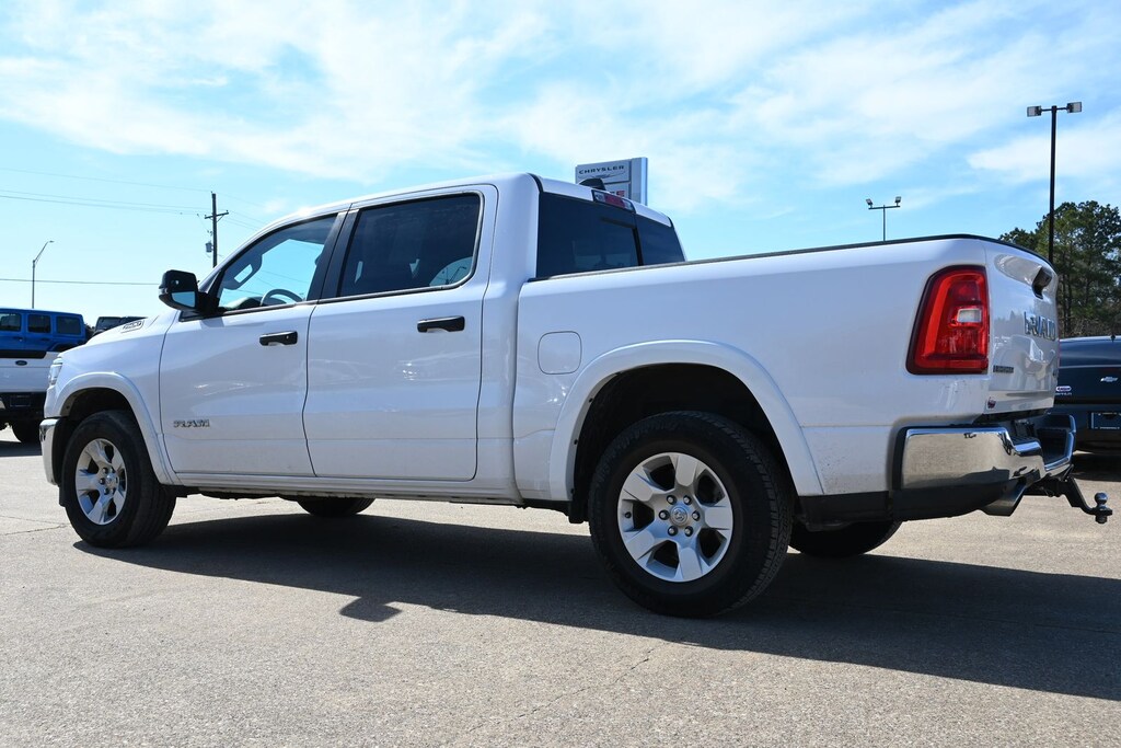 Bright White Clearcoat 2025 Ram 1500 Big Horn/Lone Star 4WD 8-Speed Automatic 3.0L I6 115V Auxiliary Power Outlet, 115V Auxiliary Rear Power Outlet, 12" Touchscreen Display, 2nd Row In Floor Storage Bins, 400W Inverter, 4G LTE Wi-Fi Hot Spot, 9 Amplified Speakers w/Subwoofer, Air Conditioning ATC w/Dual Zone Control, Apple CarPlay, Auto High-beam Headlights, Auto Power-Folding Mirrors, Auto-Dimming Exterior Driver Mirror, Auto-Dimming Rear-View Mirror, Big Horn Level 2 Equipment Group, Black Exterior Mirrors, Black Premium Power Mirrors, Cluster 7.0" TFT Color Display, Configurable Drive Mode, Connected Travel & Traffic Services, Connectivity - US/Canada, Convex Wide-Angle Exterior Mirror Insert, Exterior Mirrors Courtesy Lamps, Exterior Mirrors w/Heating Element, Exterior Mirrors w/Supplemental Signals, Fully automatic headlights, Glove Box Lamp, Google Android Auto, GPS Antenna Input, GPS Navigation, HD Radio, Heated Front Seats, Heated Steering Wheel, Integrated Voice Command w/Bluetooth, Leather Wrapped Steering Wheel, LED Dome Lamp w/On/Off Switch, LED Footwell Lighting, Media Hub w/2 Charge Only USBs, Overhead LED Lamps, Power 2-Way Driver Lumbar Adjust, Power Adjust 8-Way Driver Seat, Power Adjustable Pedals, Premium Overhead Console, Quick Order Package 21Z Big Horn, Radio: Uconnect 5 Nav w/12.0" Display, Rear Power Sliding Window, Rear Window Defroster, Remote Tailgate Release, Security Alarm, SiriusXM w/360L, Speed control, Steering Wheel Mounted Audio Controls, Sun Visors w/Illuminated Vanity Mirrors, Universal Garage Door Opener, USB Host Flip, Wheels: 18" x 8" Cast-Aluminum Painted.