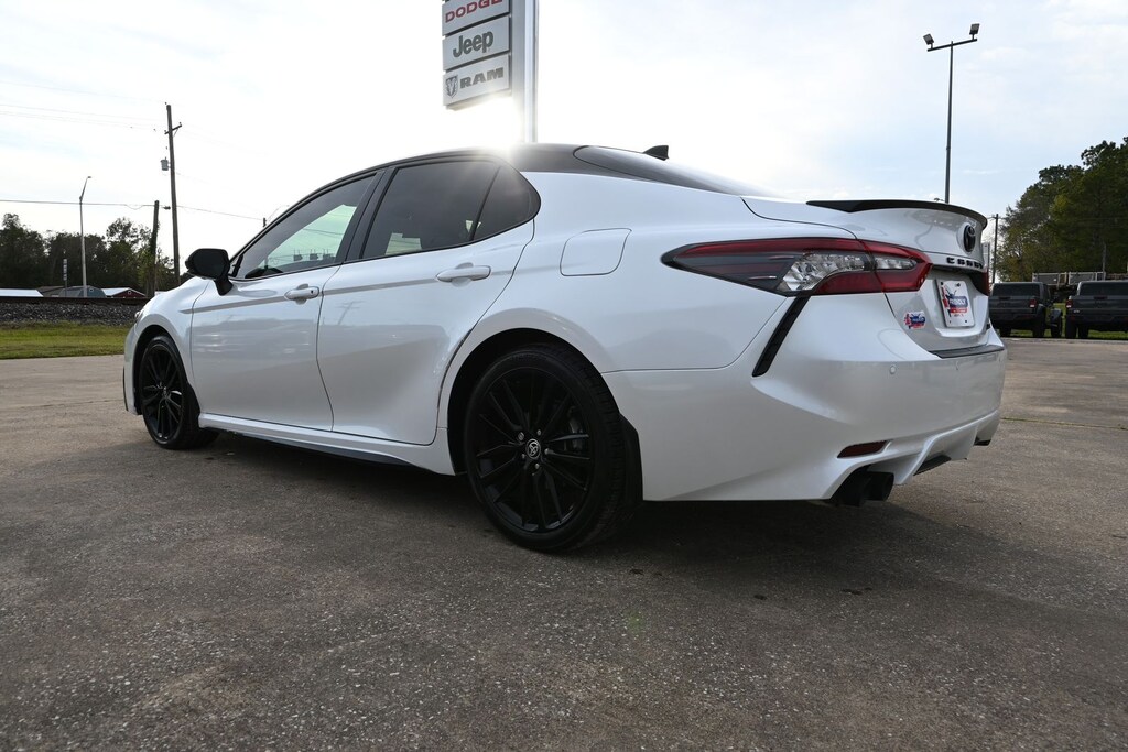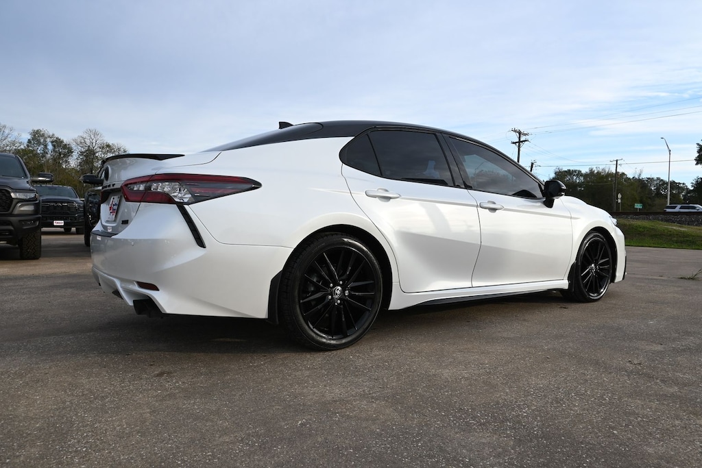 White 2023 Toyota Camry XSE V6 FWD 8-Speed Automatic 3.5L V6 DOHC 24V Black w/Perforated Leather Seat Trim, ABS brakes, Active Cruise Control, Alloy wheels, Auto High-beam Headlights, Blackout Package (TMS), Compass, Electronic Stability Control, Exterior Parking Camera Rear, Front dual zone A/C, Heated door mirrors, Heated front seats, Illuminated entry, Low tire pressure warning, Navigation Package, Perforated Leather Seat Trim, Power moonroof, Radio: Premium Audio w/JBL, Remote keyless entry, Traction control.