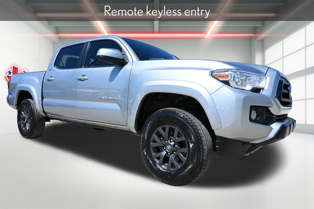 Silver 2023 Toyota Tacoma V6 RWD 6-Speed Automatic 3.5L V6 6 Speakers, ABS brakes, Alloy wheels, AM/FM radio: SiriusXM, Anti-whiplash front head restraints, Apple CarPlay/Android Auto, Auto High-beam Headlights, Auto-dimming Rear-View mirror, Brake assist, Bumpers: body-color, Driver door bin, Dual front impact airbags, Dual front side impact airbags, Electronic Stability Control, Emergency communication system: Safety Connect (1-year trial), Engine Immobilizer, Exterior Parking Camera Rear, Fabric Seat Trim, Front anti-roll bar, Front Bucket Seats, Front Center Armrest, Front dual zone A/C, Front fog lights, Front reading lights, Front Seats, Front wheel independent suspension, Heated door mirrors, Illuminated entry, Knee airbag, Leather Shift Knob, Low tire pressure warning, Navigation System, Occupant sensing airbag, Overhead airbag, Overhead console, Passenger door bin, Power door mirrors, Power driver seat, Power steering, Power windows, Radio: Premium Audio w/Dynamic Navigation, Rear step bumper, Remote keyless entry, Security system, Speed control, Speed-sensing steering, Steering wheel mounted audio controls, Tachometer, Telescoping steering wheel, Tilt steering wheel, Traction control, Trip computer, Turn signal indicator mirrors, Variably intermittent wipers.